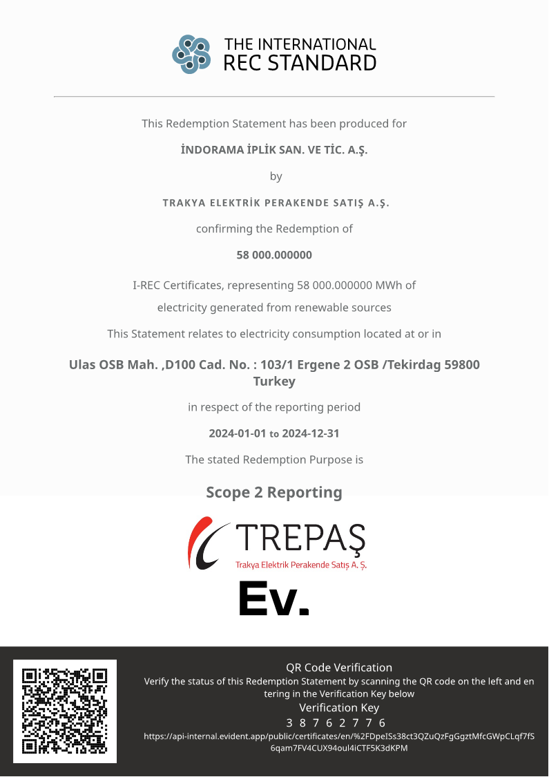 Iplik has changed its entire electricity sourcing wef February 2024 to a green source i.e. renewable hydro sources, thus reducing its GHG footprint by 23KT p.a. of Co2 equivalent i.e.1.08 MT of Co2per ton of Spun yarns produced.